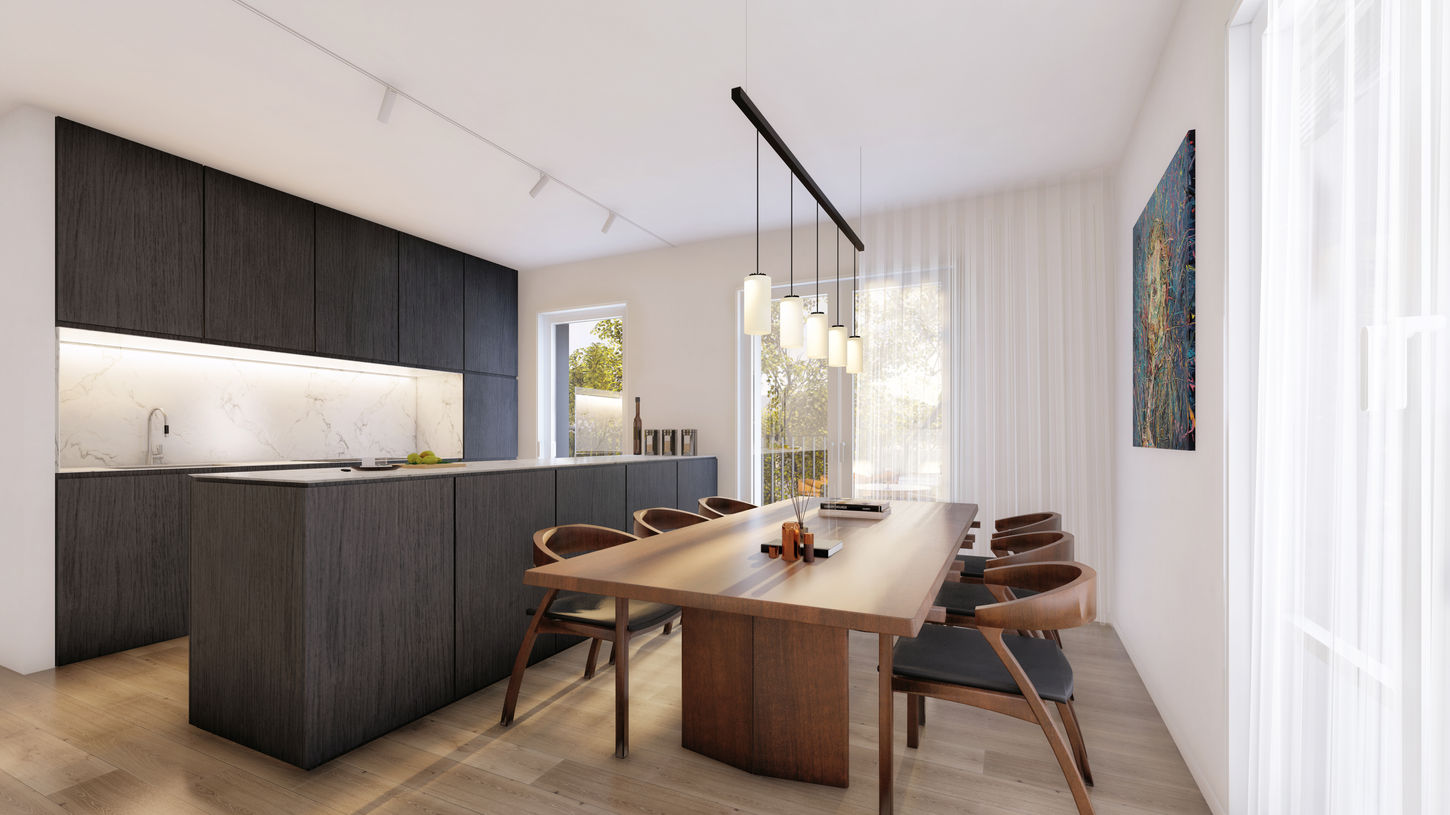 Seitersweg stands out with its straightforward architecture, distinguishing itself from the crowd. Noteworthy dormers and contrasting metal elements add distinctive accents. Inside, two apartments are located on each floor, encompassing the ground floor, the two upper floors, and the attic. Expansive windows and open living-dining areas create a unique sense of space, ranging from approximately 68 to 88 square meters.